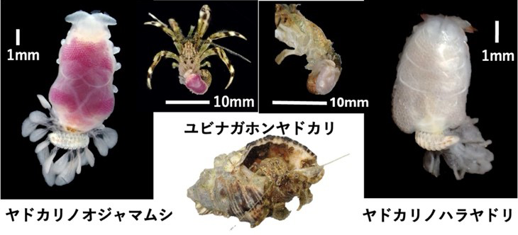 - 三重県の伊勢湾沿岸域に生息するユビナガホンヤドカリには2種の等脚類が寄生する。本研究では、この2種の生活史を明らかにするとともに、種間共存メカニズムを解明する。